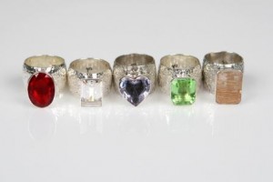 “Siam Red” Vintage French cut glass, Cubic Zirconia, Amethyst, “Celadon” Vintage French cut glass and Ruitilated Quartz Crystal, all set in sterling silver Prices from $245 to $325